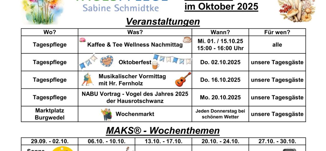 Wir freuen uns auf einen bunten und lebendigen Oktober mit Ihnen! 🍂😊