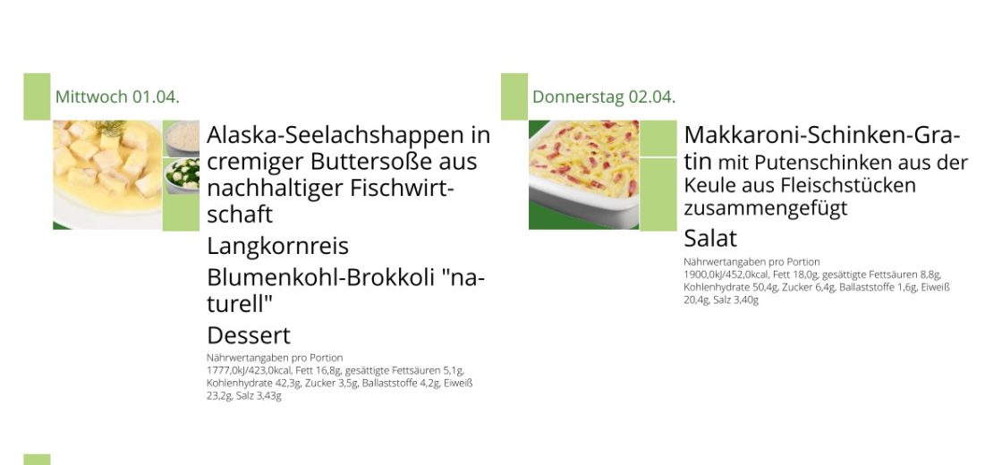 Wir freuen uns, Ihnen auch in der kommenden Woche wieder leckere, frisch zubereitete Mahlzeiten anbieten zu dürfen. Ein echter Klassiker erwartet Sie am Freitag mit Currywurst und Pommes 🌭🍟!