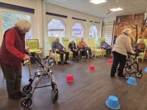 Unsere Tagesgäste sind mit überraschender Geschicklichkeit und ungewohnt ehrgeizig gegeneinander angetreten und schlängelten sich beherzt zu Fuß oder mit dem Rollator um bunte Hütchen 🚶‍♂️🚶‍♀️.