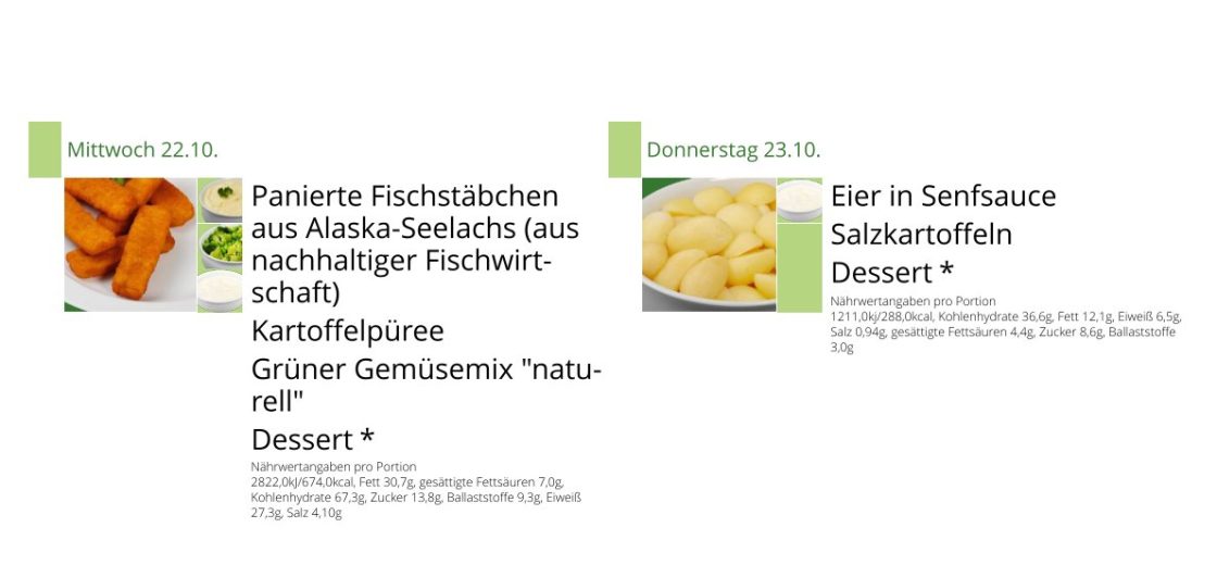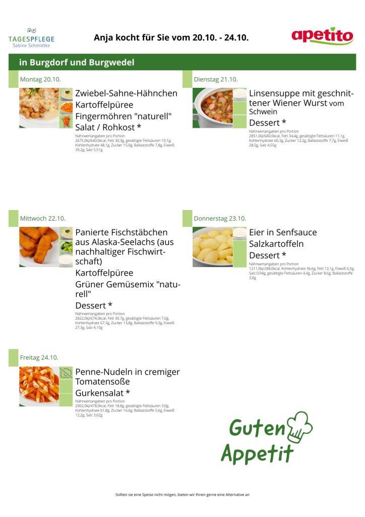 Speiseplan für die kommende Woche in unserer Tagespflege 🐟 🍽️