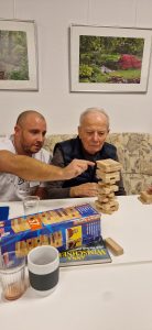 Letztens hat ein Mitarbeiter einfach mal wieder das Jenga-Spiel aus dem Schrank geholt und mit den Tagesgästen ausprobiert. Und hat so einen unglaublichen Erfolg erzielt! Ein paar unserer Gäste haben sich zusammengetan und das Spiel mit so viel Spaß und Konzentration gespielt, dass die Zeit wie im Flug verging ⏳. Und Schwupps, war für eine Stunde die innere Unruhe verschwunden während man in Gemeinschaft etwas mit Freude spielen konnte. Das hat allen Spielern und uns ein richtig gutes Gefühl gegeben!