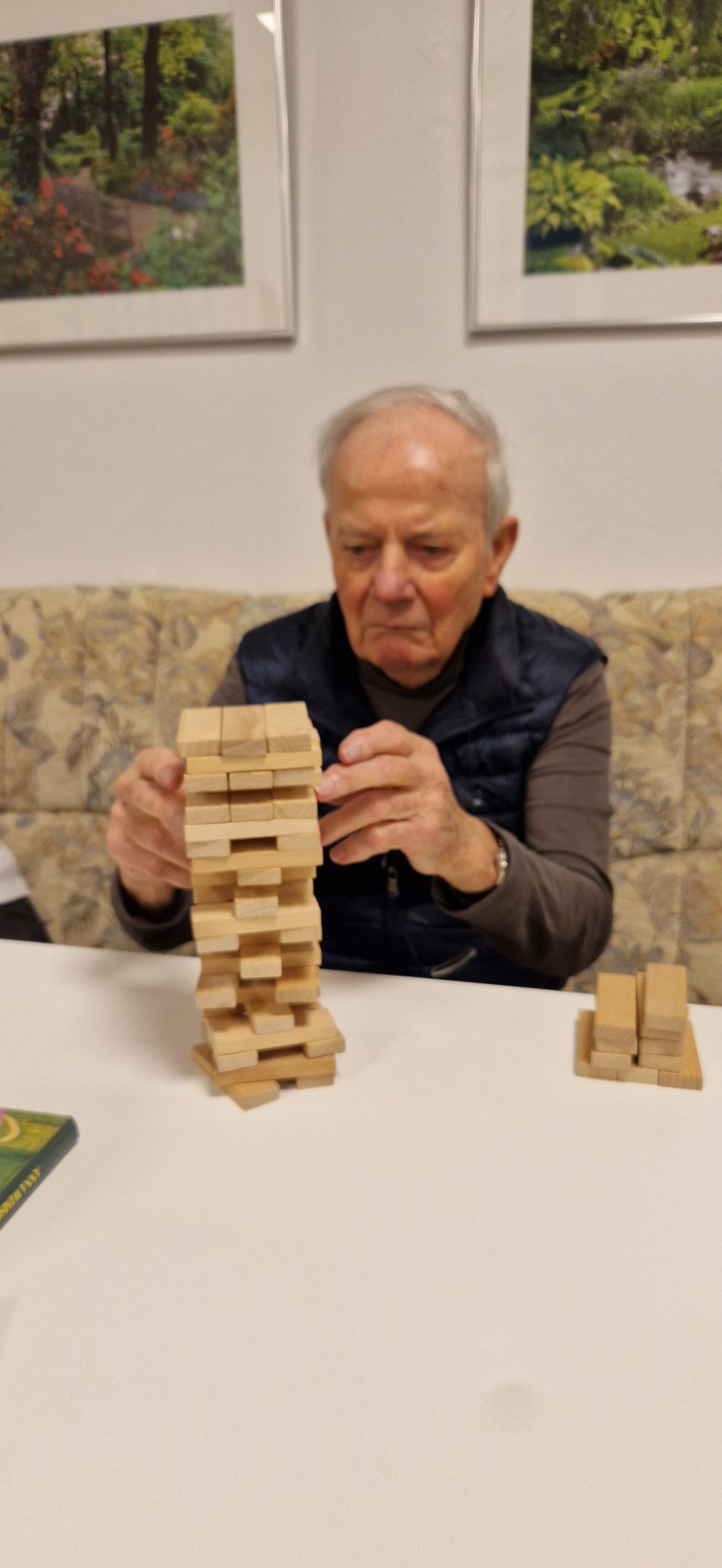 Letztens hat ein Mitarbeiter einfach mal wieder das Jenga-Spiel aus dem Schrank geholt und mit den Tagesgästen ausprobiert. Und hat so einen unglaublichen Erfolg erzielt! Ein paar unserer Gäste haben sich zusammengetan und das Spiel mit so viel Spaß und Konzentration gespielt, dass die Zeit wie im Flug verging ⏳. Und Schwupps, war für eine Stunde die innere Unruhe verschwunden während man in Gemeinschaft etwas mit Freude spielen konnte. Das hat allen Spielern und uns ein richtig gutes Gefühl gegeben!