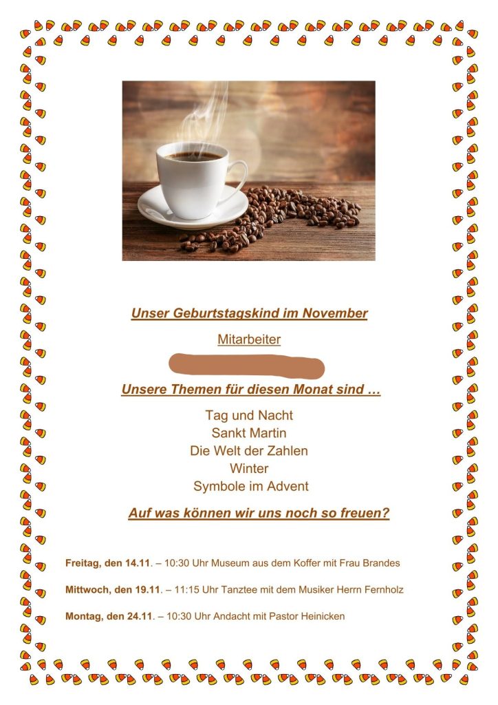 Wir freuen uns schon auf einen bunten, gemütlichen November voller gemeinsamer Momente! ☕🎶🍁